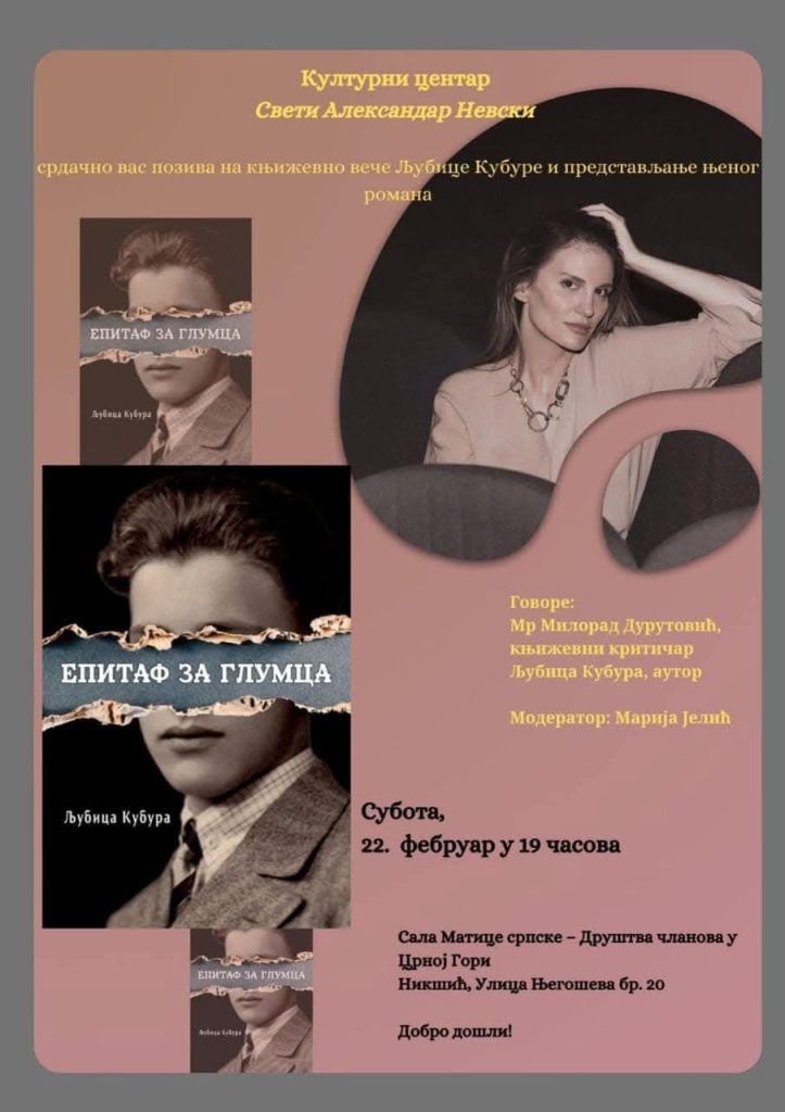 Позивамо вас на промоцију романа „Епитаф за глумца” ауторке Љубице Кубуре, која ће се одржати у Никшићу. Ово је прилика да се упознате са снажном,... ПРОЧИТАЈТЕ ОСТАТАК