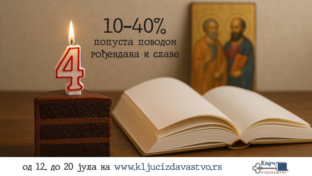 Драги пријатељи, на Петровдан прослављамо четири године од оснивања наше породичне издавачке куће, као и крсну славу фирме. Иза нас су четири године испуњене књигама, вером,... ПРОЧИТАЈТЕ ОСТАТАК