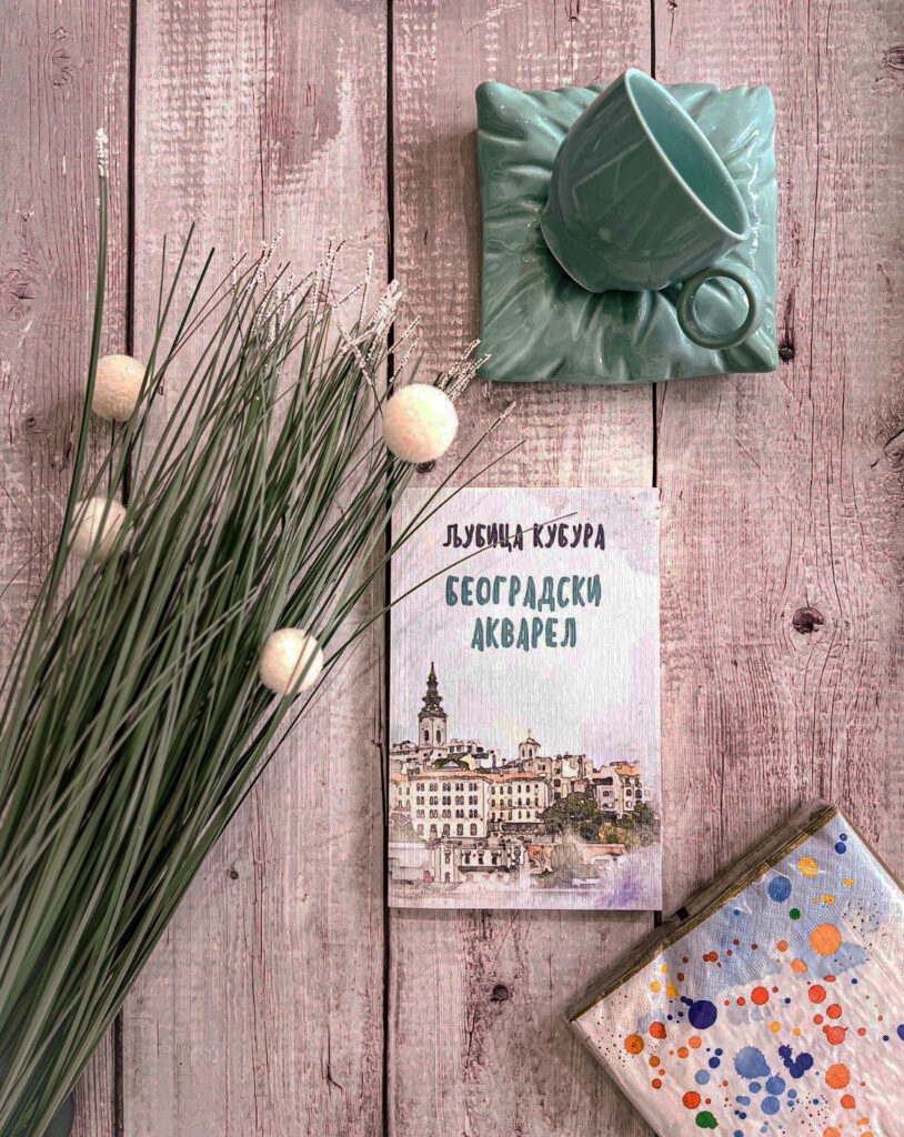 Београдски акварел је збирка кратких прича. Главни јунак је Београд, град који је платно, управо оно рапаво платно неопходно за акварел технику. Што је платно грубље, рапавије, то се боље боје на њему осликавају. Љубица је Београд ставила као позадину, као леђа сваком јунаку своје приче. Као и код именоване сликарске технике, и овде се боја добија стављањем есенције неке нијансе са циљем да се разводни. Меша се са водом да би се пастелни тонови водњикаво провидели.